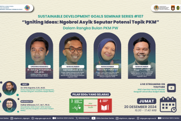 Departemen Geografi Pembangunan, Fakultas Geografi, Universitas Gadjah Mada (UGM) kembali menyelenggarakan Sustainable Development Goals (SDG’s) Seminar Series yang ke #107. Pada seminar ke 107 ini mengusung tema “Igniting Ideas: Ngobrol Asyik Seputar Potensi ...