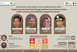 Departemen Geografi Pembangunan, Fakultas Geografi, UGM telah menyelenggarakan SDGs Seminar Series yang ke #105 pada tanggal 29 Oktober 2024. Adapun tema yang diusung adalah “Pengendalian Kerusakan Lahan (Pencegahan Lahan dari Erosi, Aksi Penanaman Berkelanjutan, dan Pemanfaatan Lahan Secara Berkelanjutan) dalam Ranah Sekolah Dasar dan Menengah”. Hal ini selaras dengan pilar yang diusung dalam SDGs, yakni pilar pembangunan sosial berupa tujuan ke-4 “Pendidikan Bermutu” dan tujuan ke-5 “Kesetaraan Gender”, sera pilar pembangunan pembangunan lingkungan berupa tujuan ke-11 “Kota dan Komunitas yang Berkelanjutan” dan tujuan ke-12 “Konsumsi dan Produksi yang Bertanggung Jawab”. Seminar kali ini dikemas secara menarik bersama dua narasumber yaitu Bapak Edy Nugroho Santoso dan Ibu Siti Arina Budiastuti yang membahas terkait edukasi pengendalian kerusakan penggunaan lahan dalam ranah sekolah dasar dan menengah. Selain itu, pengantar wacana pada seri kali ini diberikan secara langsung oleh Bapak Ir. Sugeng Purwanto, M.M.A. selaku Pejabat Wali Kota Yogyakarta.