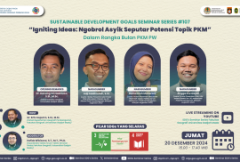 Departemen Geografi Pembangunan, Fakultas Geografi, Universitas Gadjah Mada (UGM) kembali menyelenggarakan Sustainable Development Goals (SDG’s) Seminar Series yang ke #107. Pada seminar ke 107 ini mengusung tema “Igniting Ideas: Ngobrol Asyik Seputar Potensi Topik PKM” pada tanggal 20 Desember 2024. Hal ini selaras dengan pilar yang diusung dalam SDGs, yakni pilar pembangunan sosial berupa tujuan ke-3 “Kesehatan yang Baik dan Kesejahteraan” dan tujuan ke-4 “Pendidikan Bermutu”.
